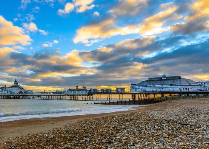 3 Queens Gardens Sea View ferielejlighed er en strand-indkvartering beliggende i nærheden af Eastbourne Pier. Der er en mikrobølgeovn, el elkedel og en ovn i et udstyret køkken .